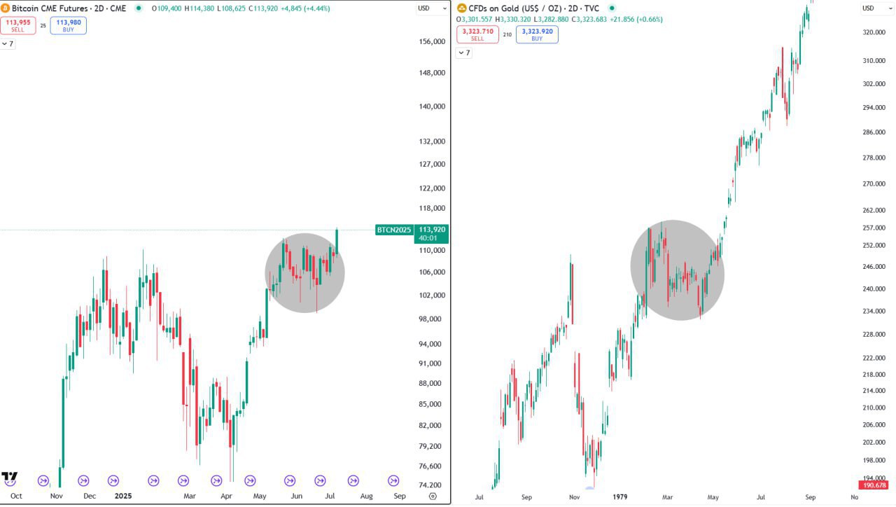 Bitcoin CME Futures 2025 vs Gold 1979: Pattern Comparison