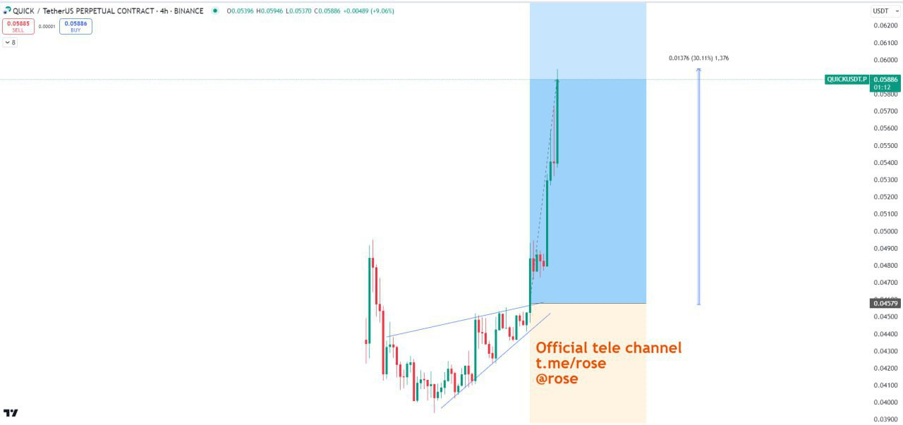 Ticker: QUICKUSDT Entry points: 0.05848 Stop loss: 0.05396 Take profit: 0.06200 π£ If you like my project and wish to support me, the best support would be to subscribe to the private channel. π ______ π Join the private π·Rose…