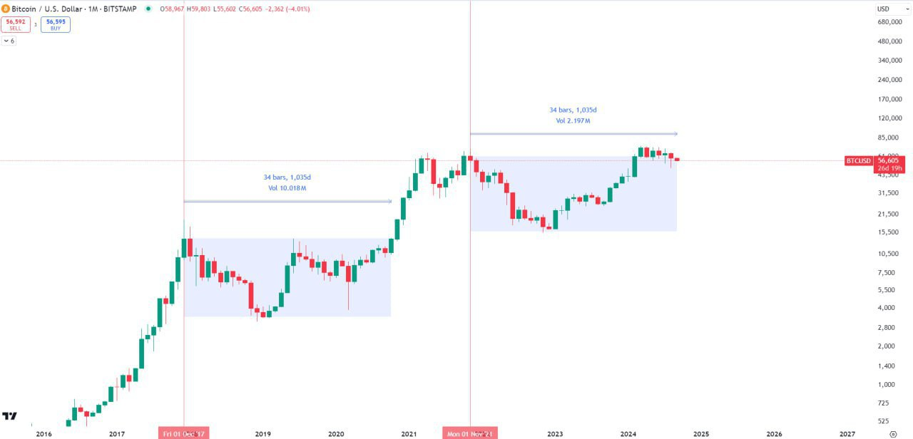 Previous cycle 2017: BTC took 34 months for ( Bearrun + Consolidation range) Current cycle: this September is the 34th monthly from the top of 2021 Top. Try to survive from September π π£ If you like my project and…
