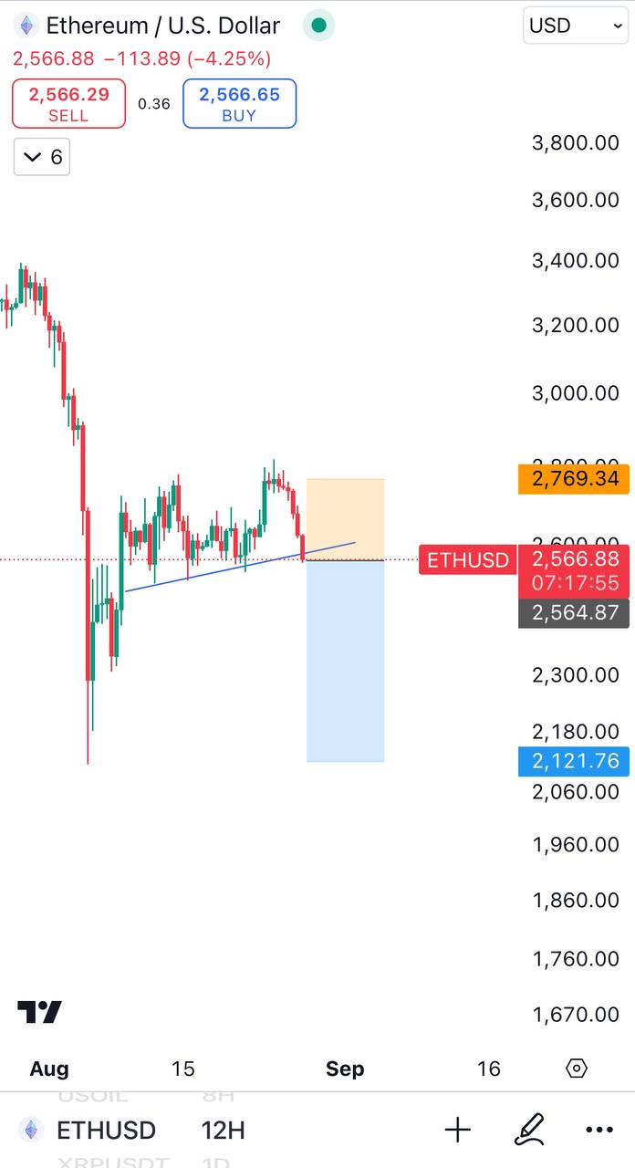 Ticker: ETHUSD Entry points: 2566.88 Stop loss: 2769.34 Take profit: 2121.76 π£ If you like my project and wish to support me, the best support would be to subscribe to the private channel. π ______ π Join the private π·Rose…