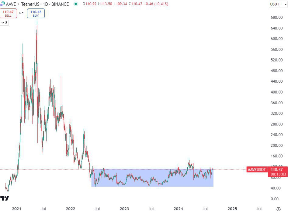 Trading old dino alts is not good idea but there are always exceptional ones. For example: BCH & LINK at lately 2023. Now I see #AAVE has much potential growth with this box. Just accumulate & Hold some below 110$…
