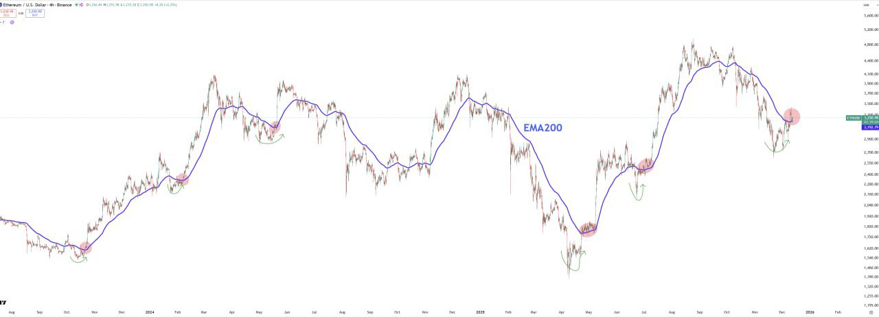 Quick crypto trading strategy: wait for a breakdown, then price returns above the 4-hour EMA200, consolidation follows β enter on the breakout. Short and actionable setup for traders.