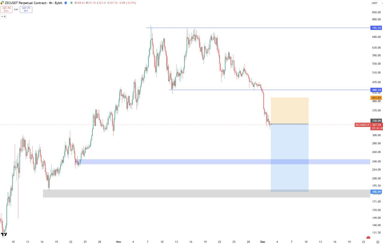 ZEC short trade alert: low take-profit (TP) level moved lower. Quick note for Zcash traders to review the setup and adjust risk management accordingly.