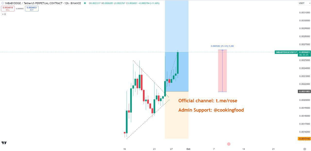 Ticker: 1MBABYDOGE Entry points: 0.0026021 Stop loss: 0.002618 Take profit: 0.0005282 π£ If you like my project and wish to support me, the best support would be to subscribe to the private channel. π ______ π Join the private π·Rose…