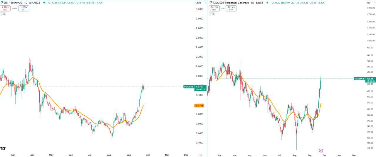 #SUI #TAO are top performance this month in BigCap sector. One is the leader of L1 Other is the leader of AI It’s interesting that both of them were slow at previous season. π£ If you like my project and…