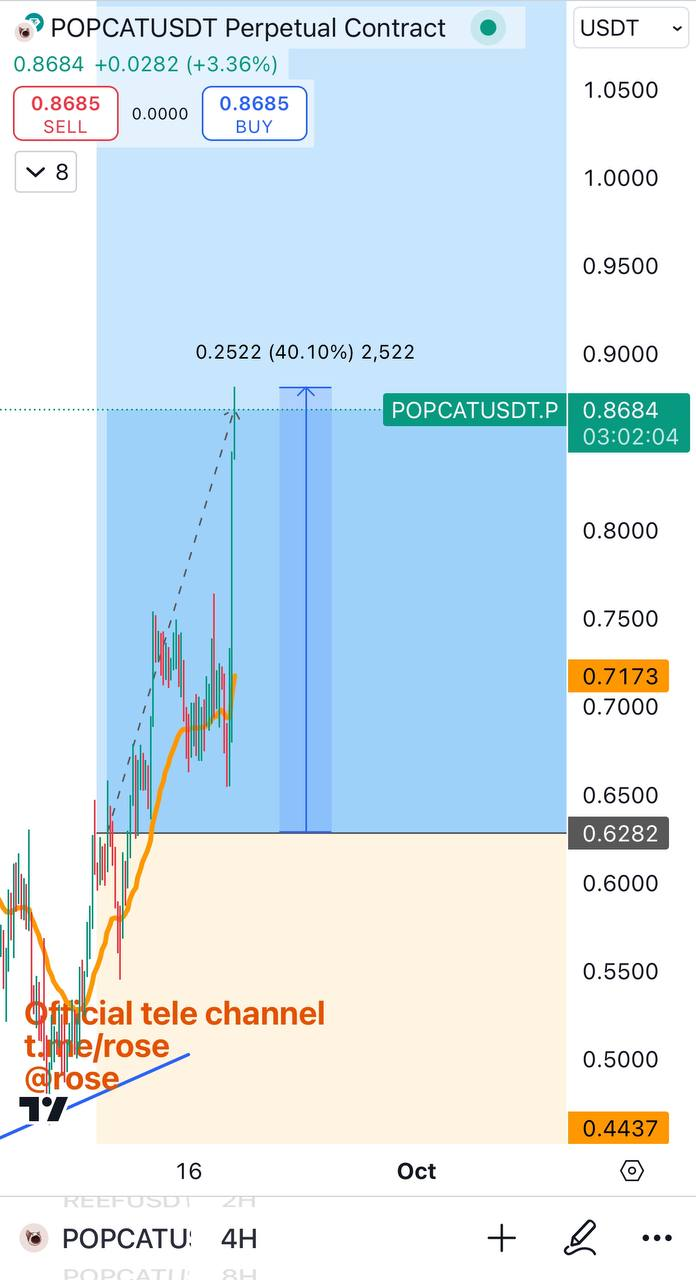 Ticker: POPCATUSDT Entry points: 0.8685 Stop loss: 0.7173 Take profit: 0.2522 π£ If you like my project and wish to support me, the best support would be to subscribe to the private channel. π ______ π Join the private π·Rose…