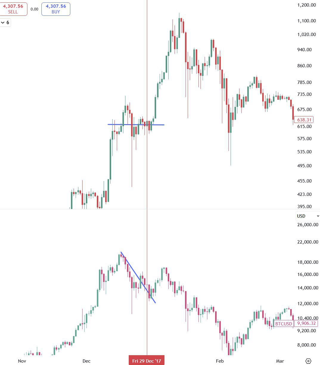 Jan 2018, BTC recovered – ETH up from 600 to 1k2