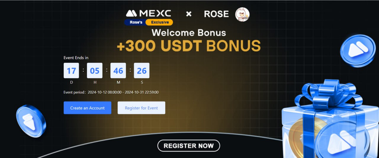 MEXC x ROSE STREET Exclusive Event: Claim FREE (up to) $300 as New User Step 1: Register new account in MEXC with ref code: mexc-ROSEVIP Step 2: Deposit and trade to accumulate your volume to claim free $300 in real USDT.