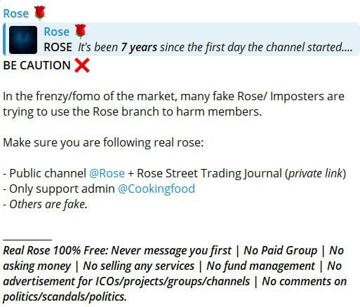 In the frenzy/fomo of the market, many fake Rose/ Imposters are trying to use the Rose branch to harm members.