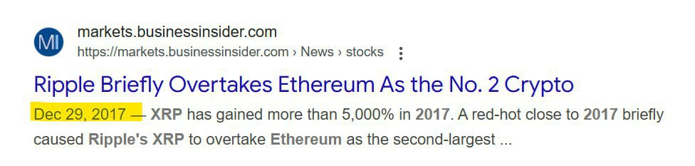 Ripple briefly overtakes Ethereum as the No. 2 crypto.