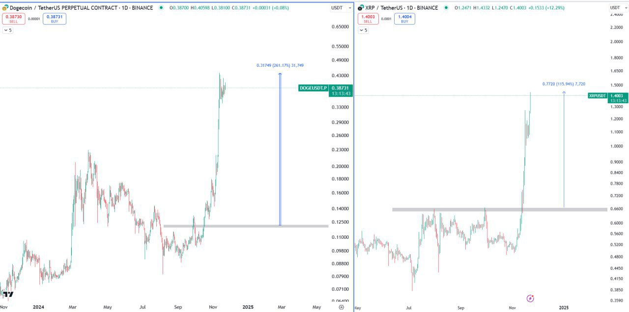 DOGE up 260% XRP up 110% The most hated rallies.
