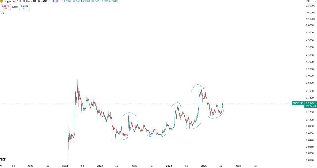 DOGE Parabolic Final Leg: Higher Lows & Higher Highs