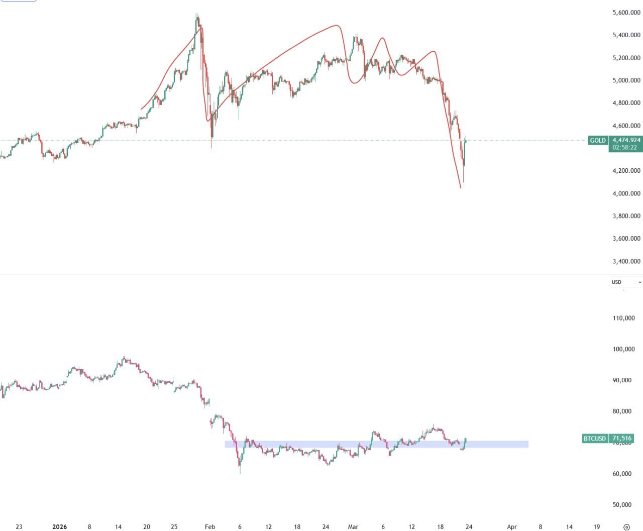 Gold is more of a risk-on asset than Bitcoin at the moment