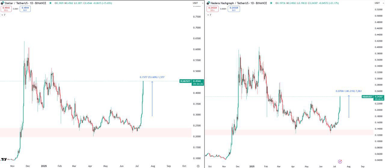 #XLM +50% #HBAR +40%