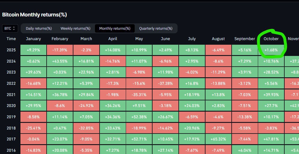 BTC monthly return is still green