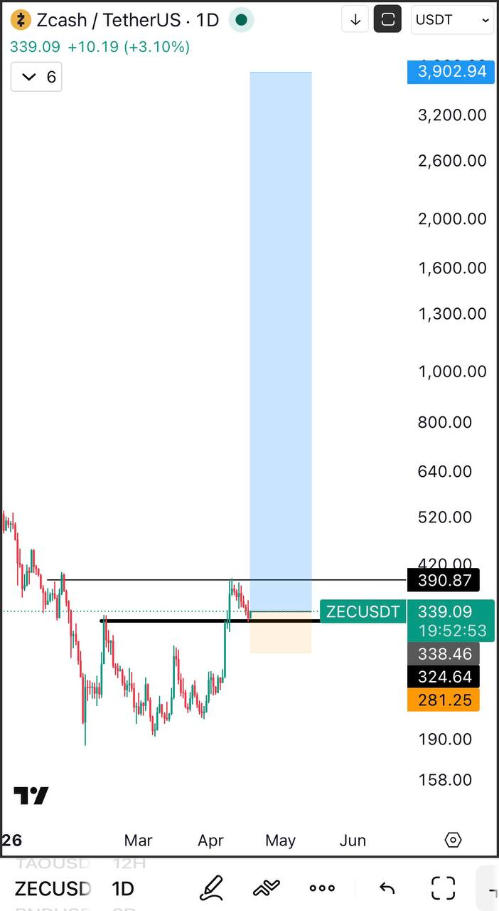 ZEC Bullish Targets โ€” Tp1: 390, Tp2: 3900